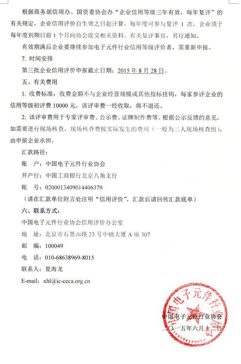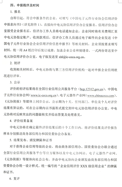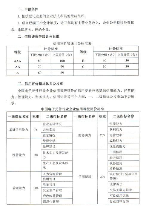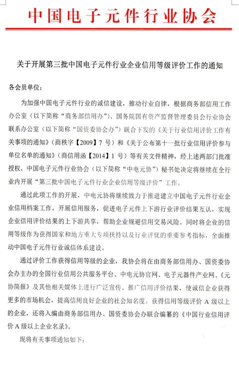 关于第三批中国电子元件行业企业信用等级评价工作的通知