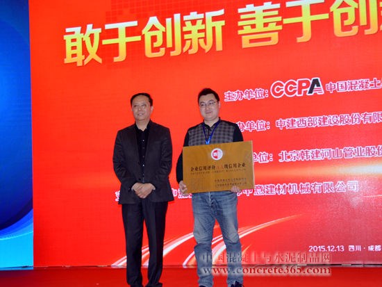 12月13日,2015中国混凝土与水泥制品行业大会在四川成都召开,大会为2015年度混凝土与水泥制品行业信用评价获奖企业授牌。